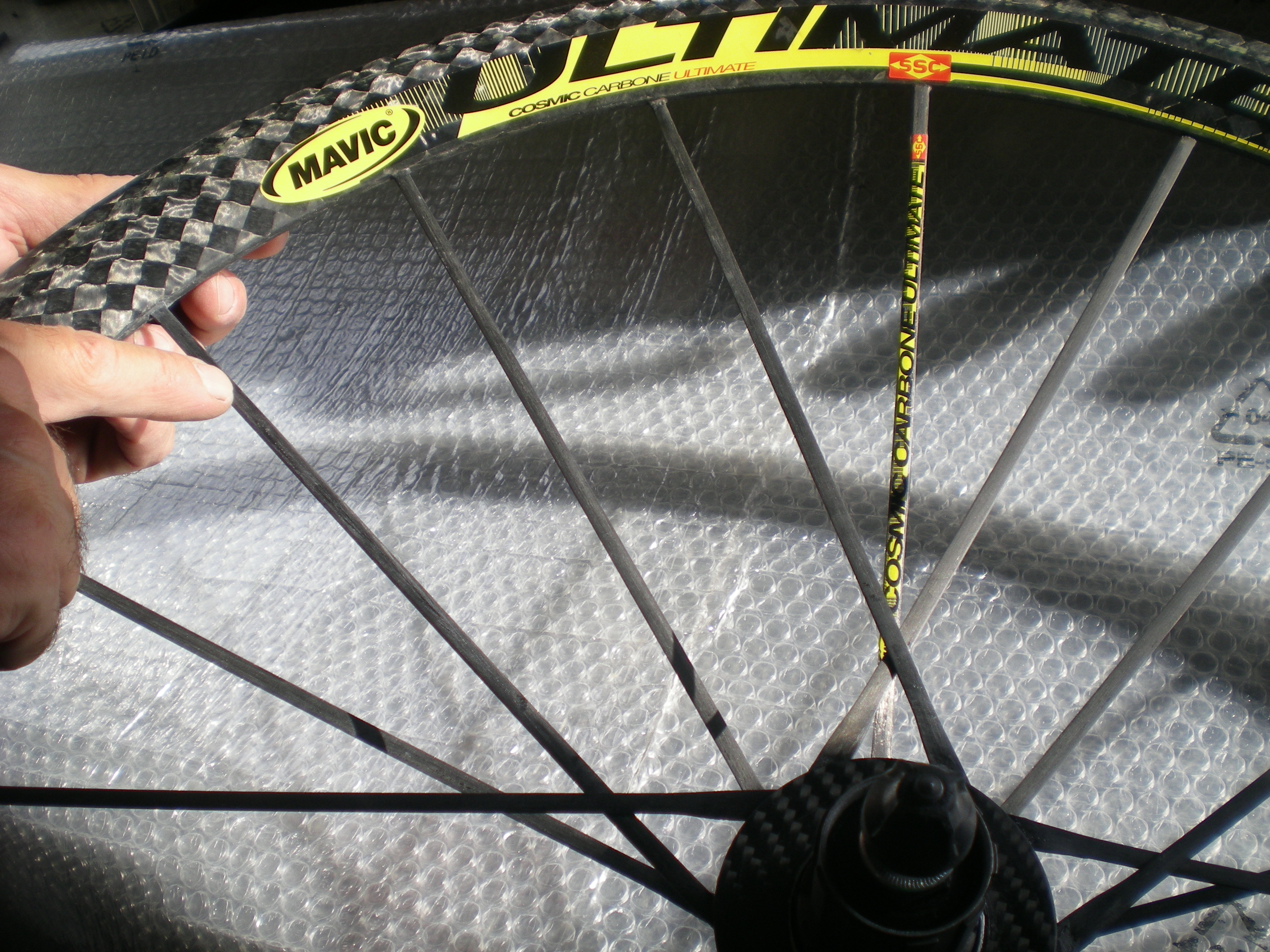 Uno sfortunato incidente è costato la rottura di questo raggio in carbonio monoscocca con il cerchio.
