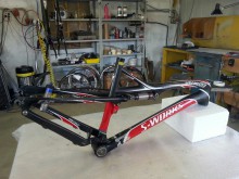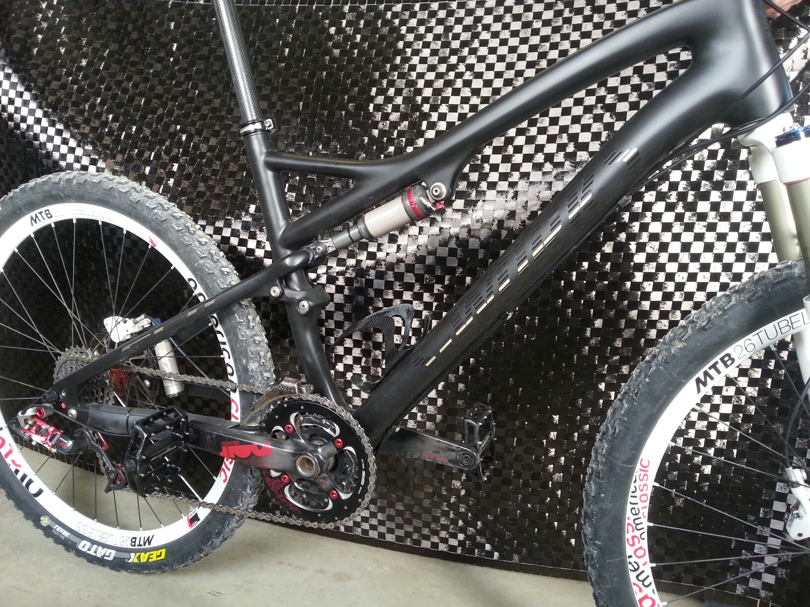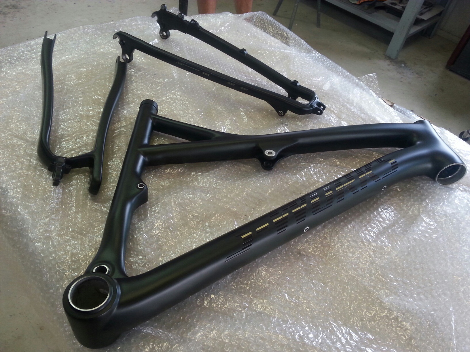 Questo telaio è stato prima riparato, poi modificato per alloggiare ruote da 27,5 e infine riverniciato completamente e rimontato come si può vedere nelle foto.